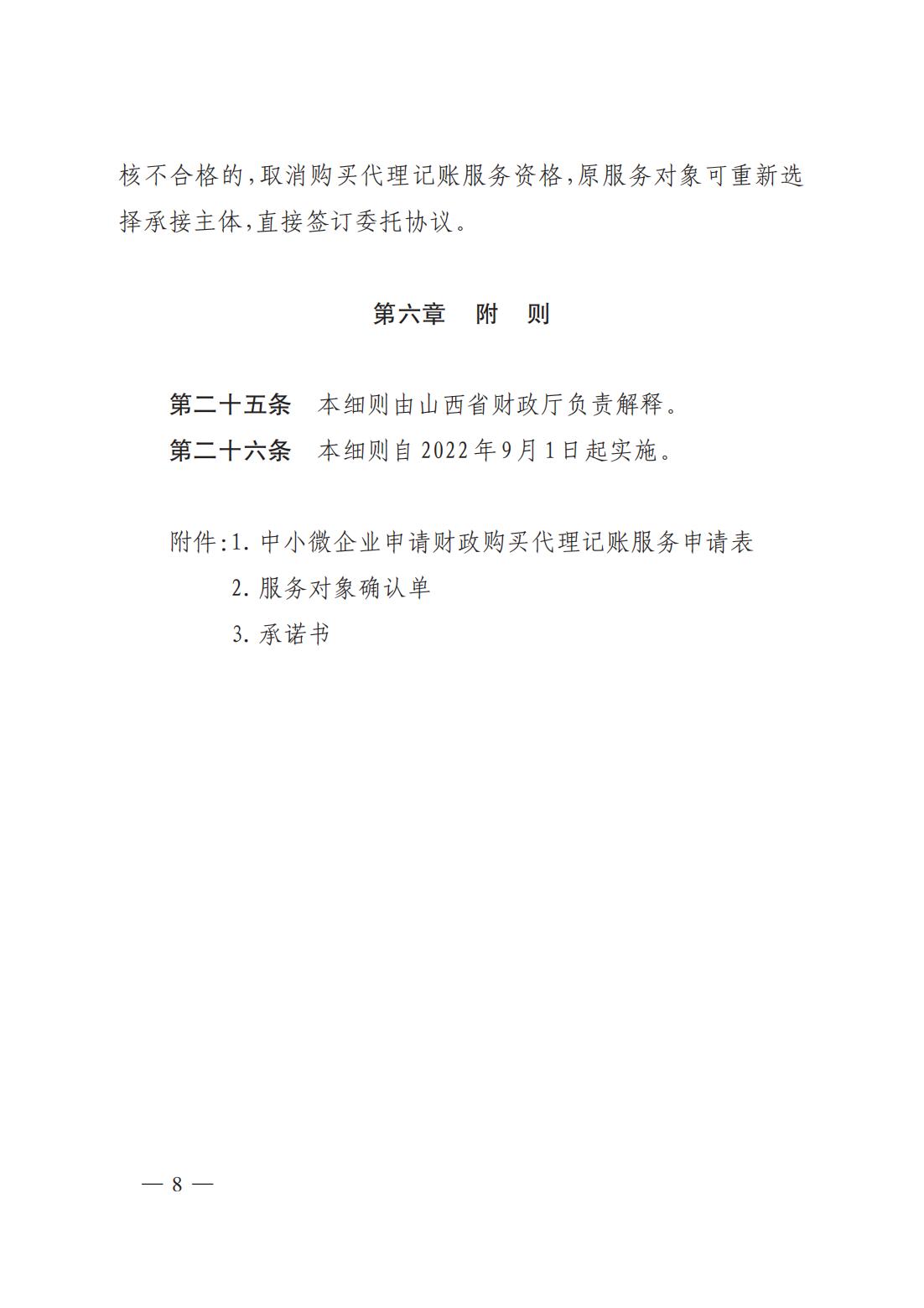 關(guān)于印發(fā)《山西省財政廳為中小微企業(yè)購買代理記賬服務(wù)實施細則(試行)》的通知